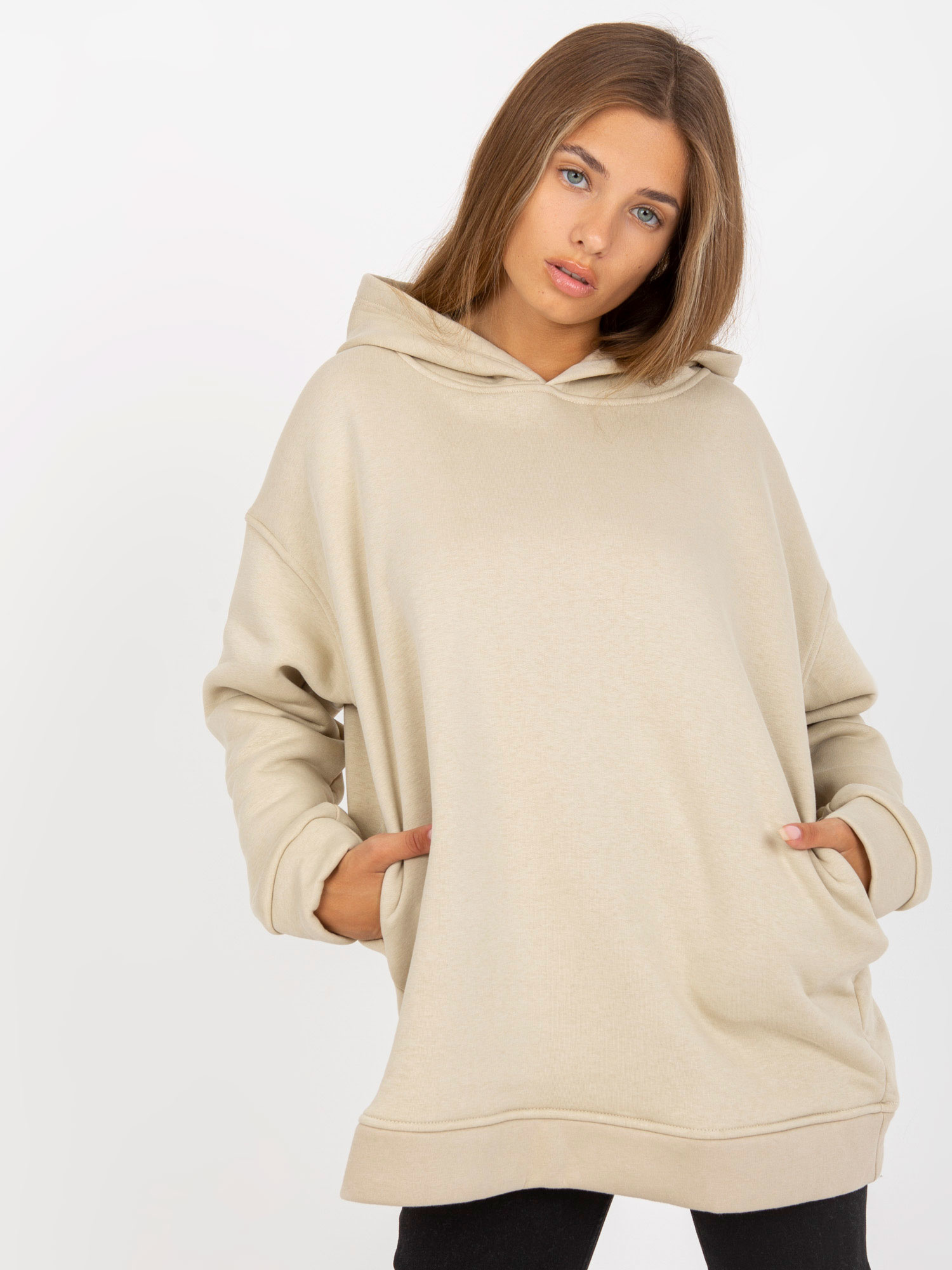 Bawełniany beżowy dresowy basic z kieszeniami, to idealny codzienny outfit dla każdego. Wykonany z 90% bawełny i 10% elastanu sprawia, że bluza jest wygodna i oddychająca. Kolekcja RV-BL-8042.00P występuje w klasycznej, gładkiej stylistyce, dopasowanej do mody casual miejskiej – na co dzień, na miasto, ale też na spacer. Dostępny w rozmiarze S. Wymiary: szerokość pod pachami – 61 cm, długość rękawa – 55 cm, długość całkowita – 69 cm . Zalecane pranie w pralce w 30°C.