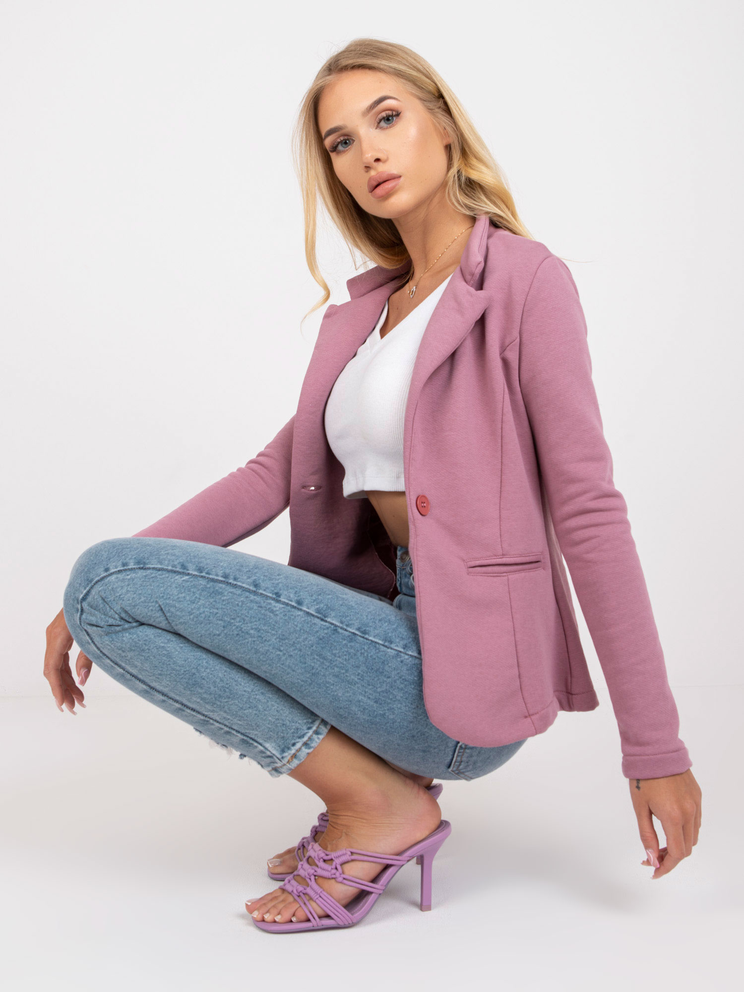 Brudnoróżowy dresowy żakiet z zapięciem